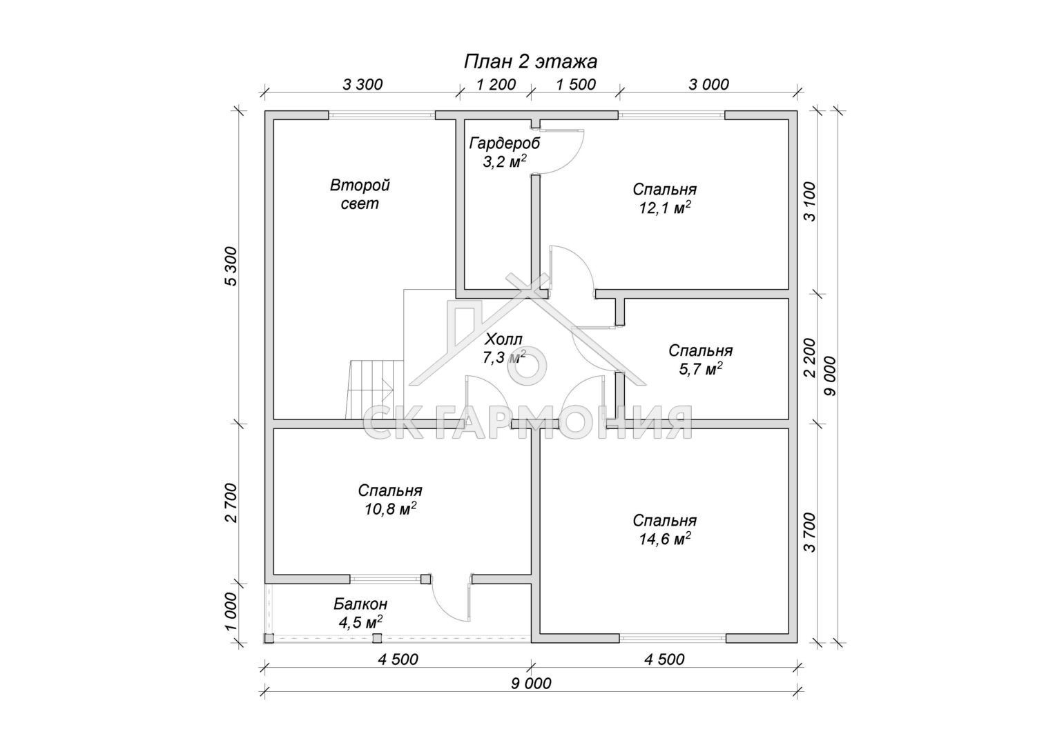 Цена строительства дома «Домодедово» размером 9x9 и площадью 198 м2 - от 2 624 000 р.
